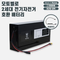 모토벨로 2세대 전기자전거 호환 보조배터리(36V40Ah)는 KC인증을 받은 국산 리튬이온배터리로, 모토벨로 2세대 전기자전거에 맞는 연결젠더가 포함된 고성능 배터리입니다. 10Ah부터 40Ah까지 용량 선택이 가능합니다.