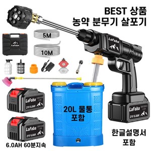 LaFaba 농약 살포기 충전식 분무기 고압 자동 동력 분사기 세차 살수 농사, 본품+20L배낭+고용량배터리 2개, 1개